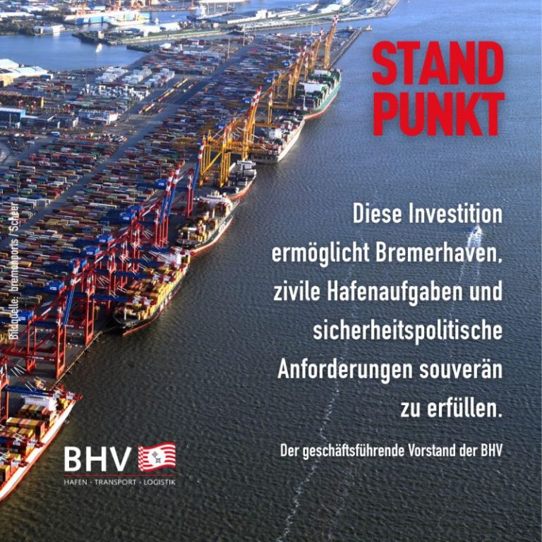 Die Finanzierung aus dem Verteidigungshaushalt erfolgt aus der sicherheitspolitischen Neubewertung der deutschen Hafenstandorte heraus. Gleichzeitig ermöglicht sie zentrale Modernisierungen in der zivilen Hafeninfrastruktur, die längst